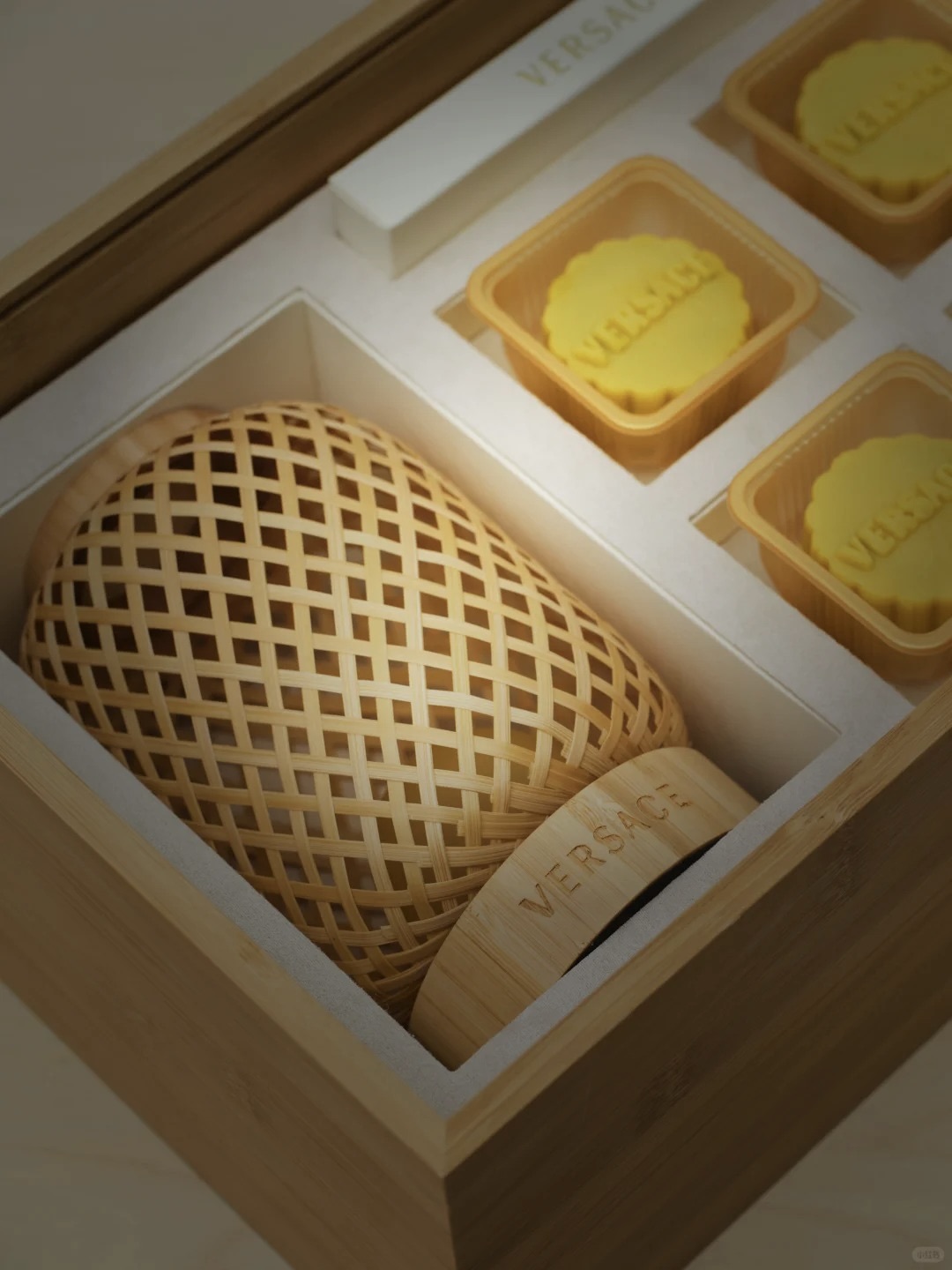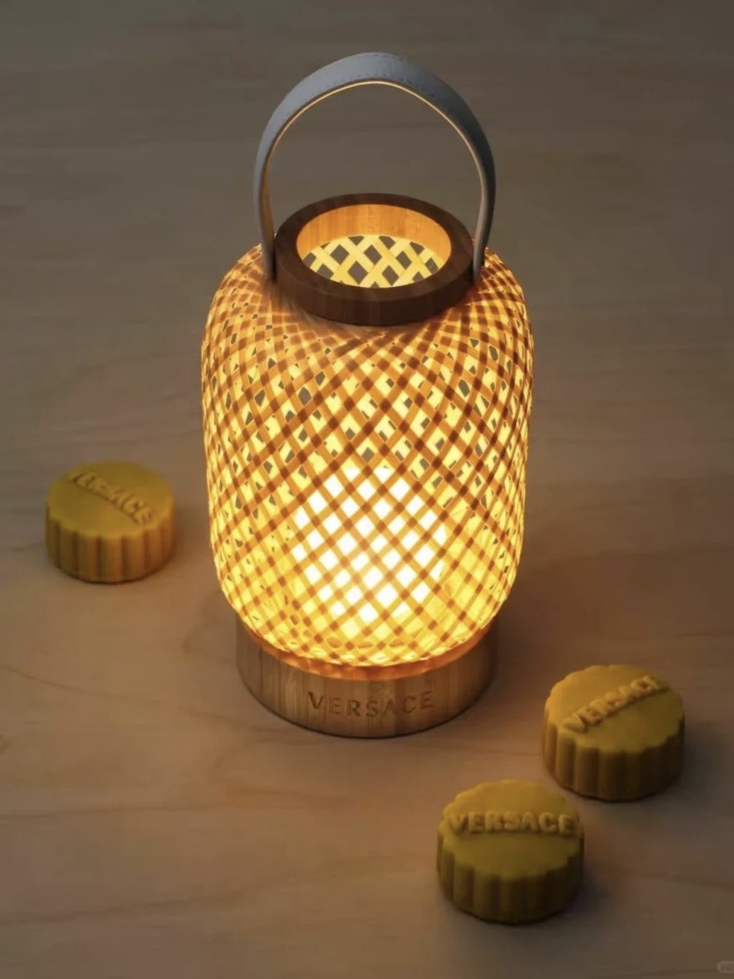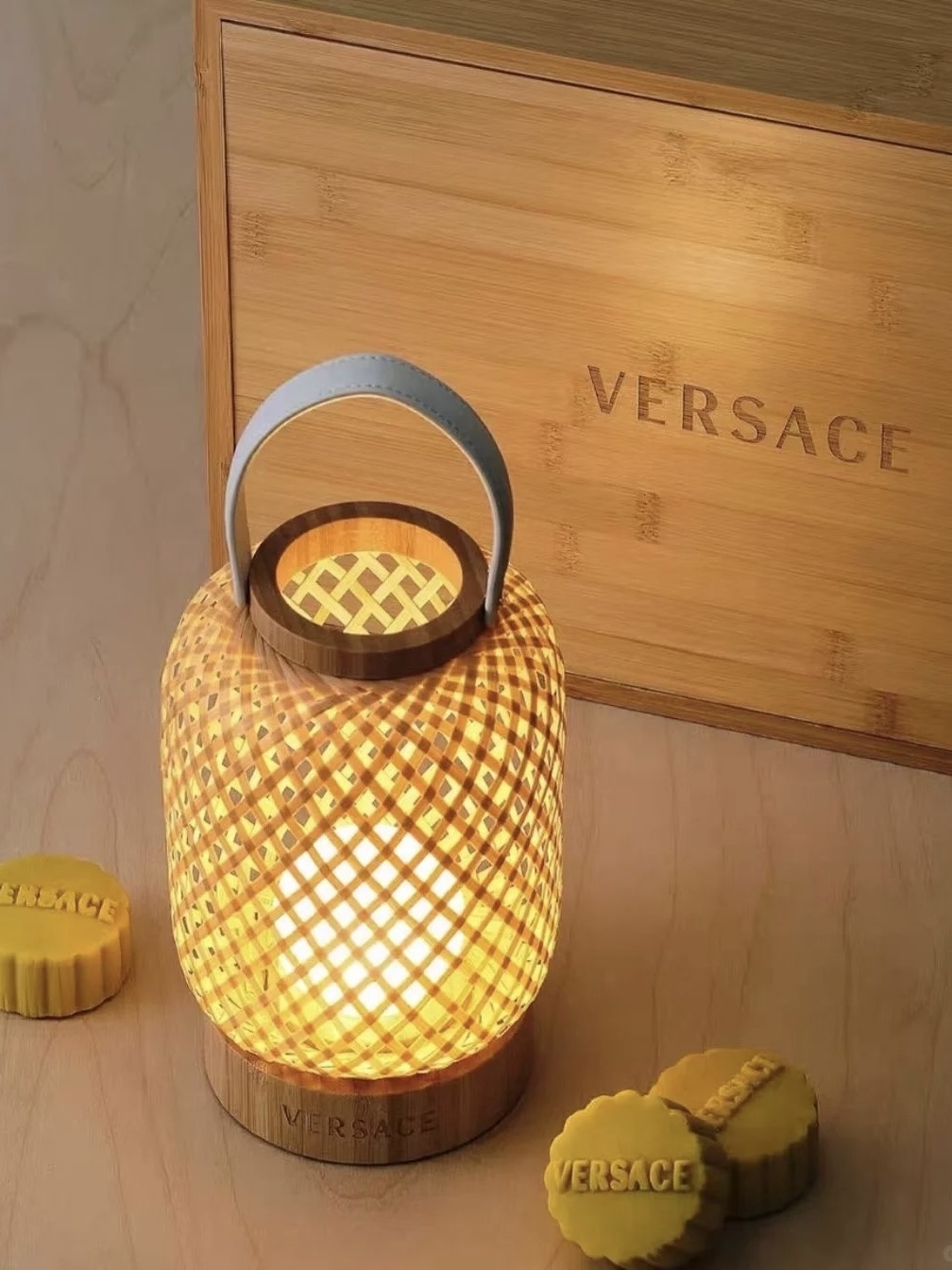 The bamboo lantern, engraved with the Versace logo, contains a circular candle symbolizing reunion and completeness. By merging traditional bamboo artistry with Versace’s iconic aesthetics, it embodies both cultural heritage and contemporary sophistication, while creating a warm and festive atmosphere.